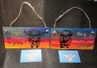 My acrylics designs are crafted with recycled materials. Sealed ensuring durability and vibrancy.